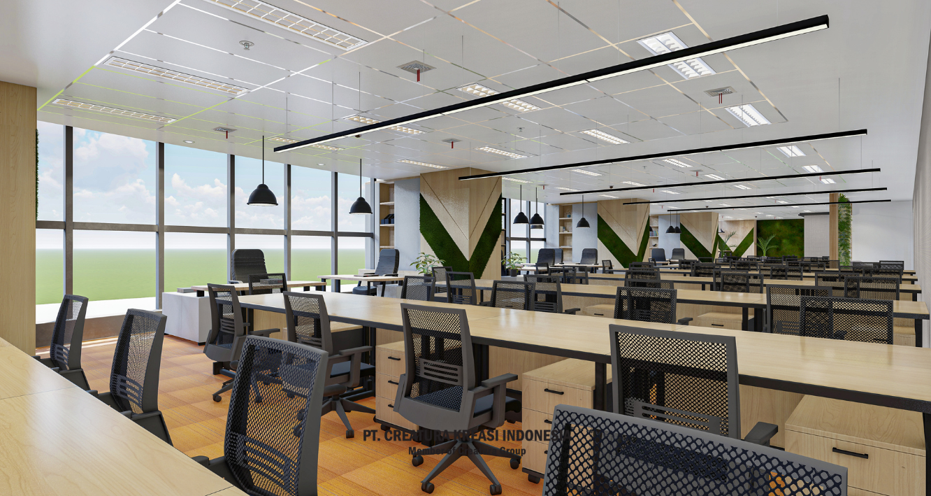 This open-plan office is designed for teamwork and focus. With ergonomic chairs, modular desks, and clean lighting, it supports both solo work and collaboration. Warm tones and greenery create a fresh, welcoming space that helps teams stay productive and inspired.