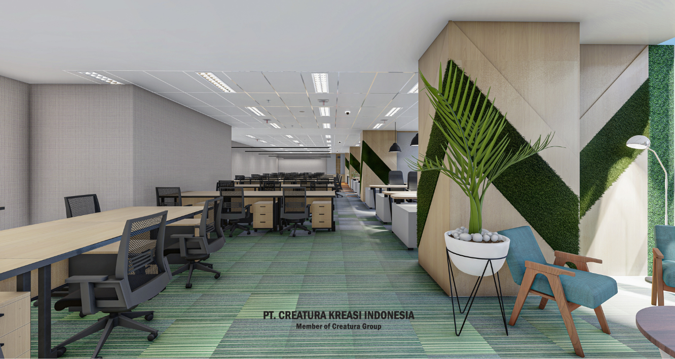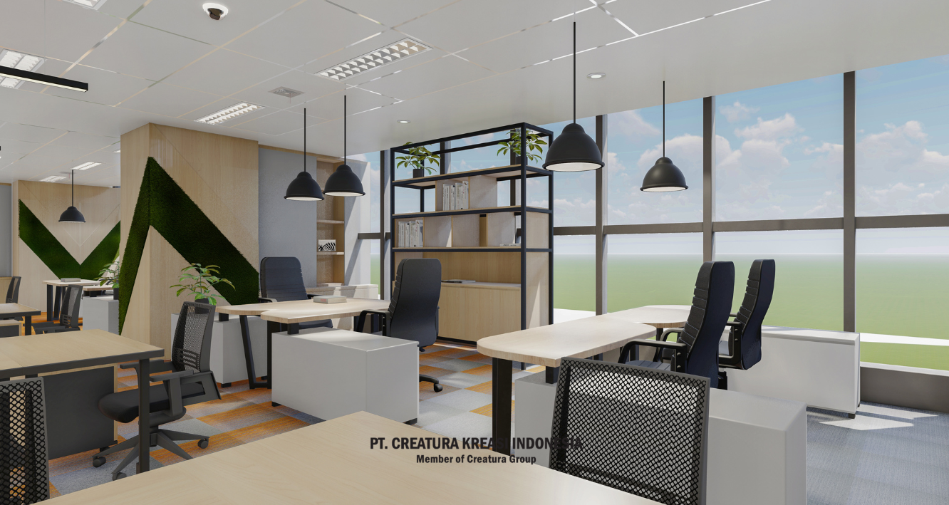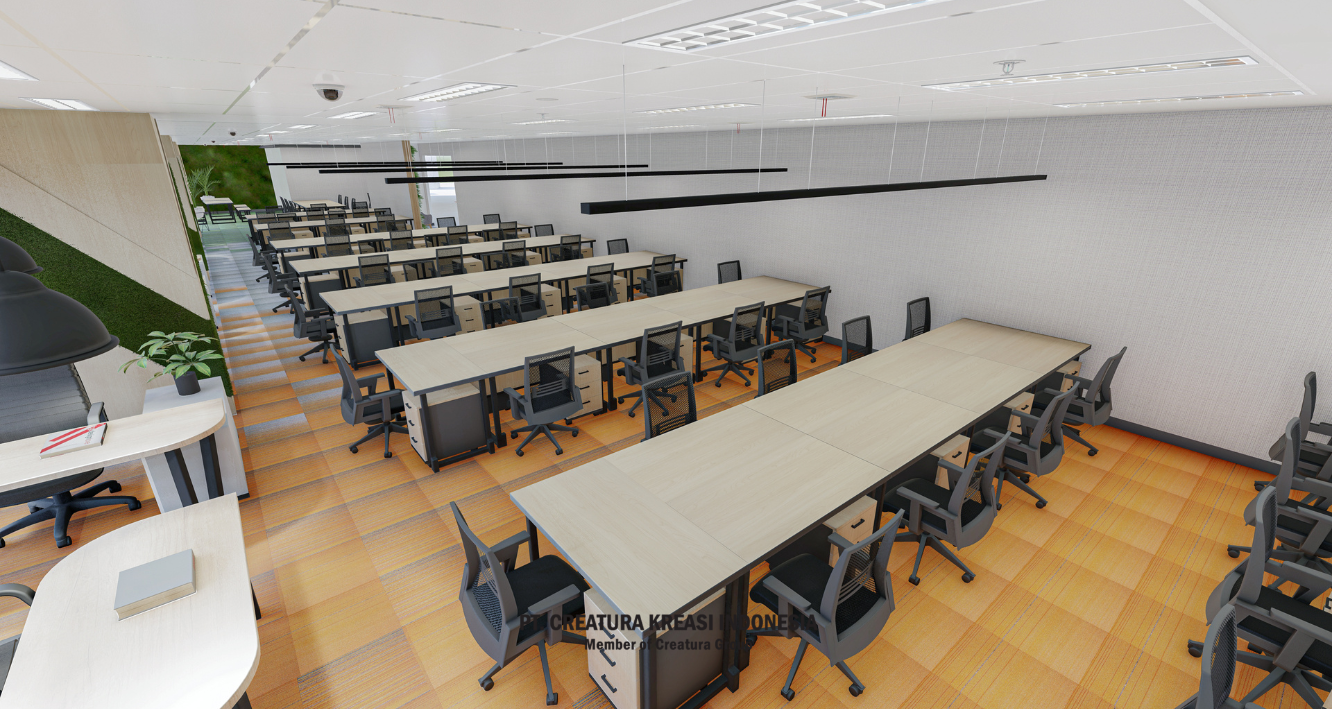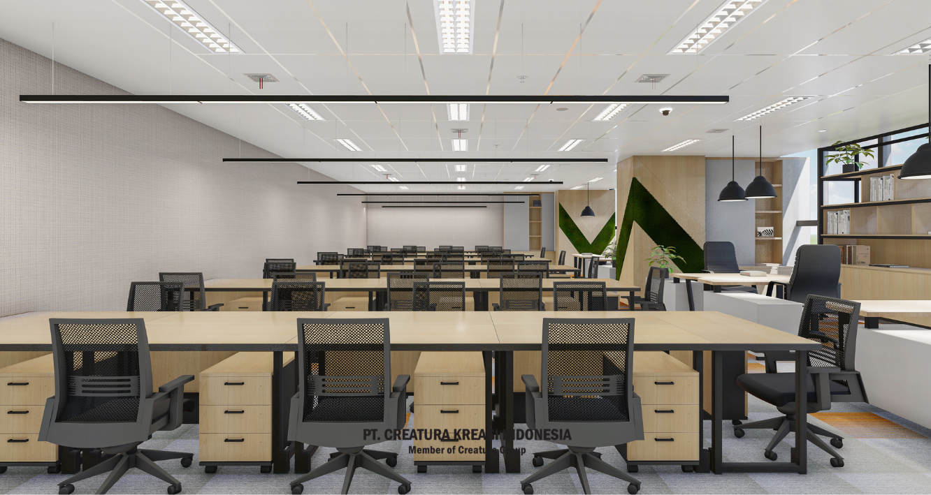 This open-plan office is designed for teamwork and focus. With ergonomic chairs, modular desks, and clean lighting, it supports both solo work and collaboration. Warm tones and greenery create a fresh, welcoming space that helps teams stay productive and inspired.