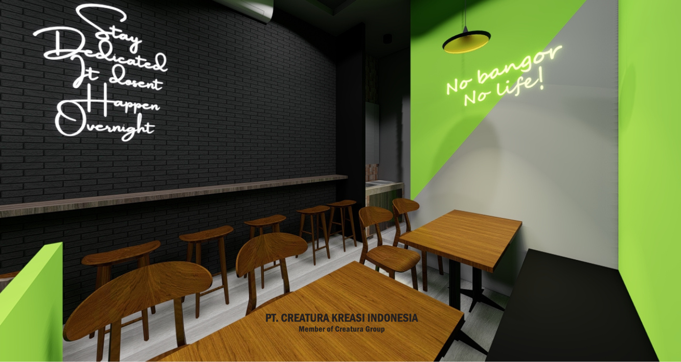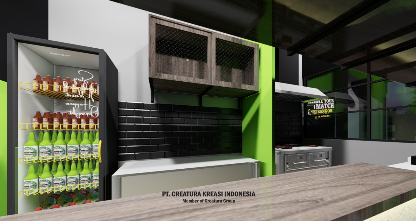 A design and build project for a fast food restaurant in several branches. Burger bangor has a special theme so that each branch has the same character. Burger bangor has a nice and cozy ambience.