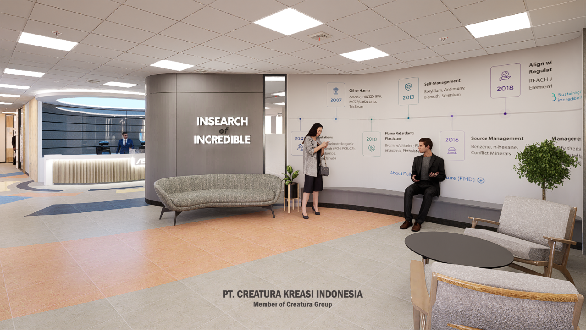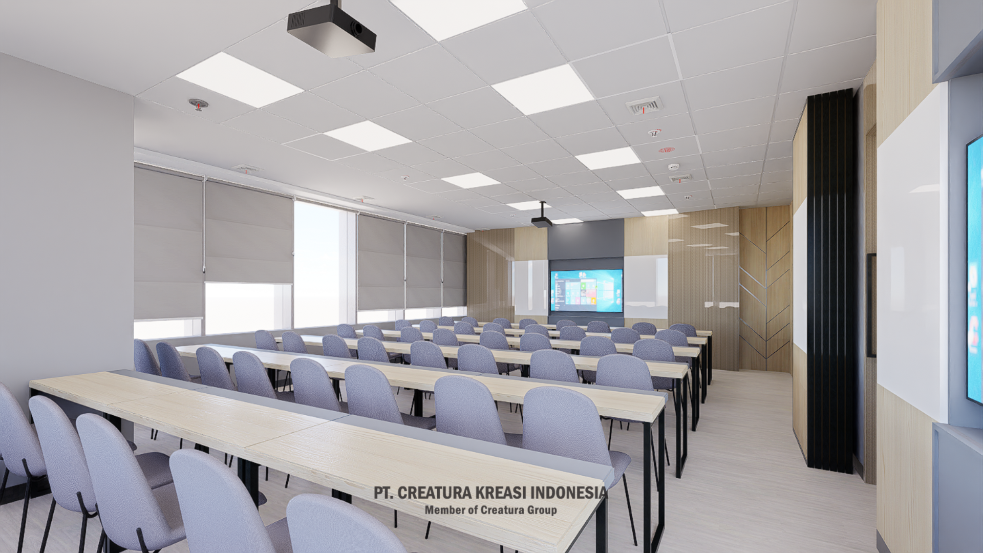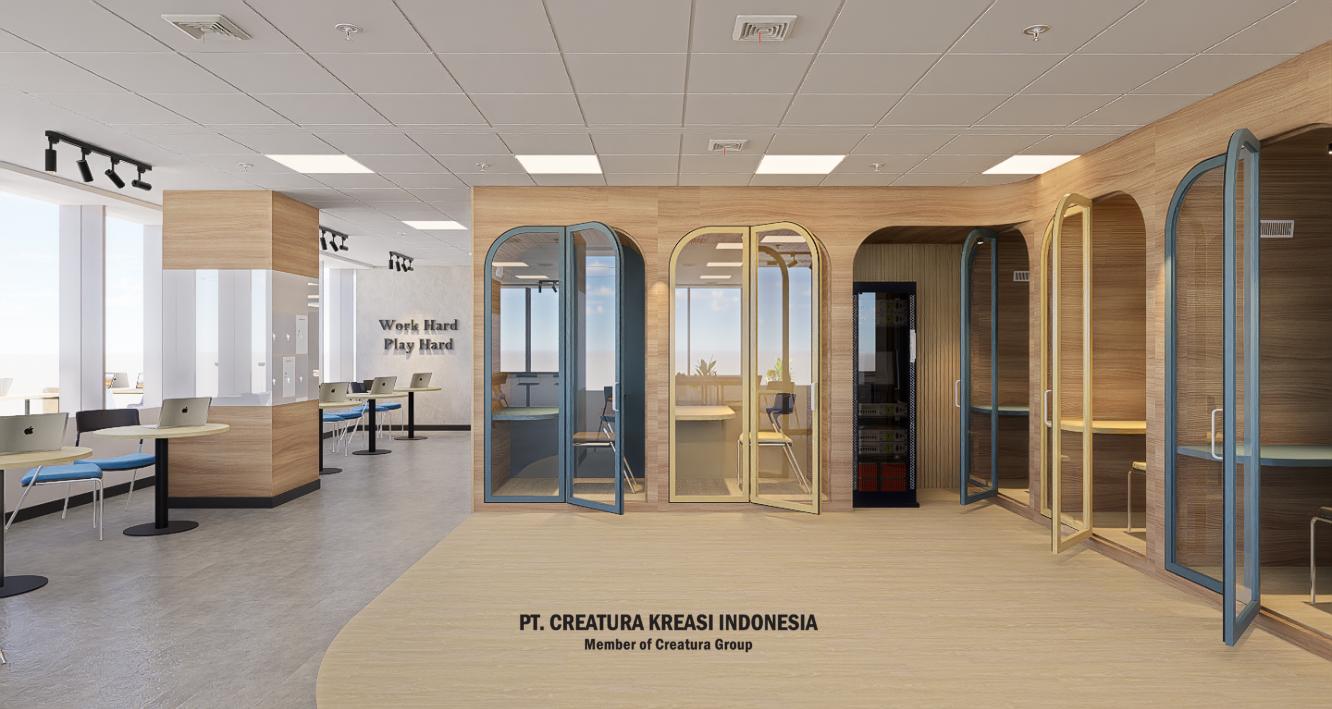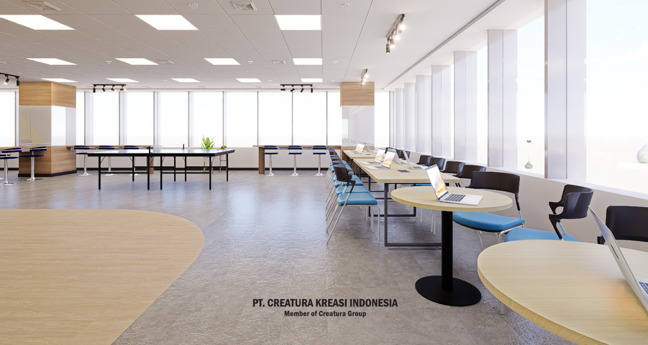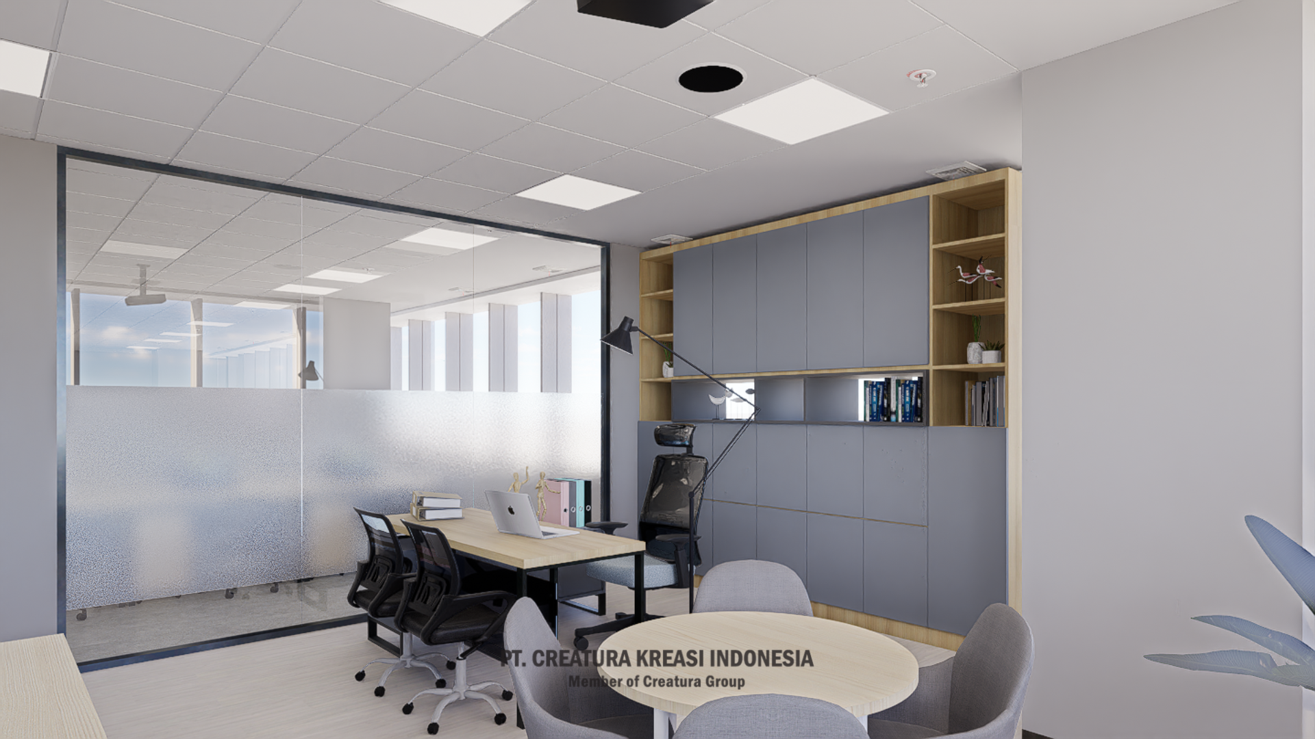 The office is designed with a modern, dynamic and collaborative workspace concept, which supports productivity and creativity. Flexible spaces for various needs, such as meetings and collaboration, are available. Neutral colors (white, grey, beige) create a calm atmosphere, with a touch of bright yellow for added energy. Comfortable breakout spaces are available to support a balance of work and rest.