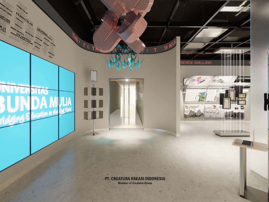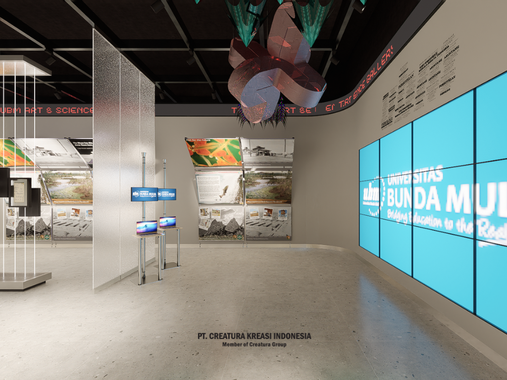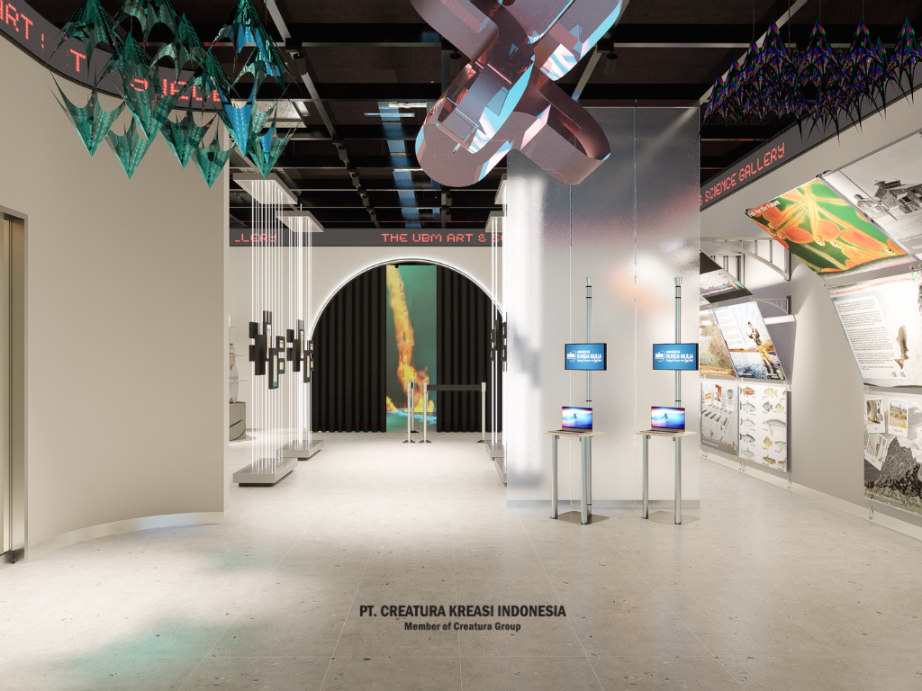 The UBM Art & Science Gallery provides a platform for students to explore. Gate that represents a science and art gallery. The use of running text, white and black colors, static meets interactive design. Interesting contrasts and moving elements create a unique visual experience. This interactive design invites you to interact and discover new surprises at every curve of the corner.