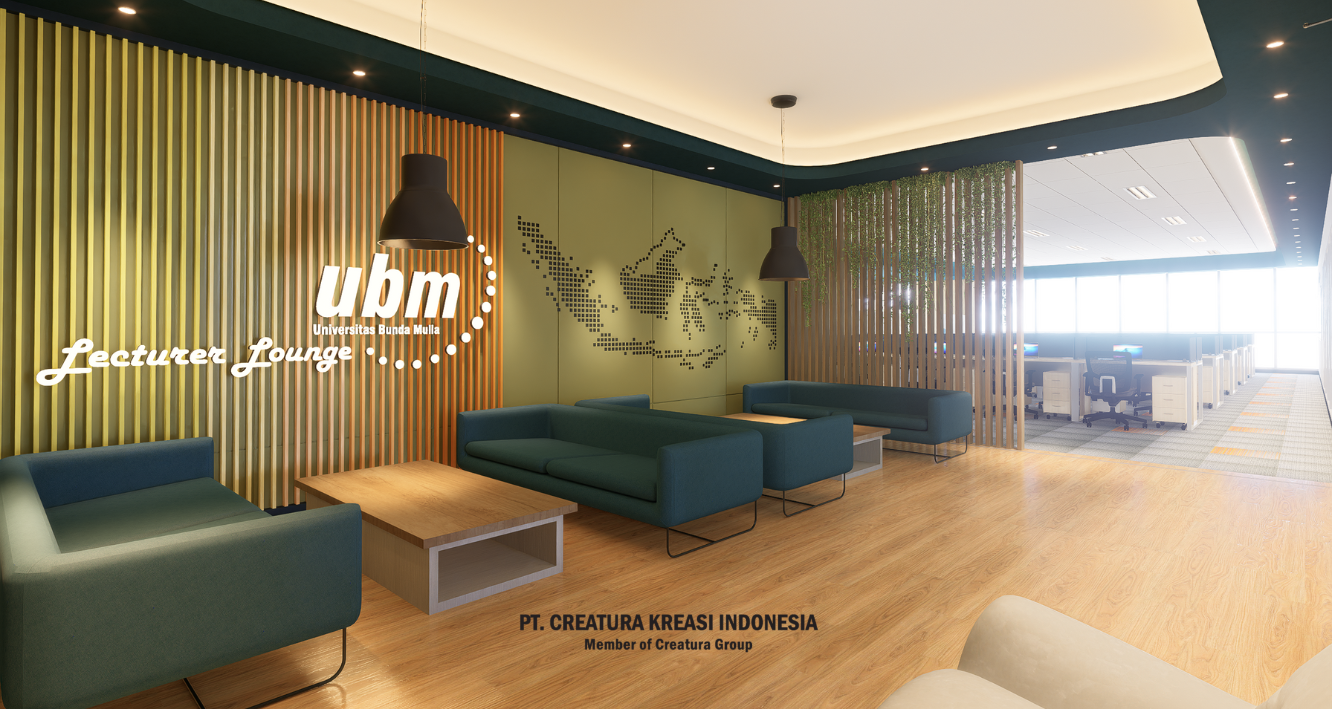 A lecturer's lounge designed in a modern and cozy style. Neutral colors, comfortable furniture, and attractive decorative elements create a warm atmosphere.