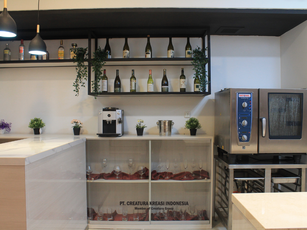 The kitchen is designed in a minimalist and functional style, featuring a range of advanced features and appliances.