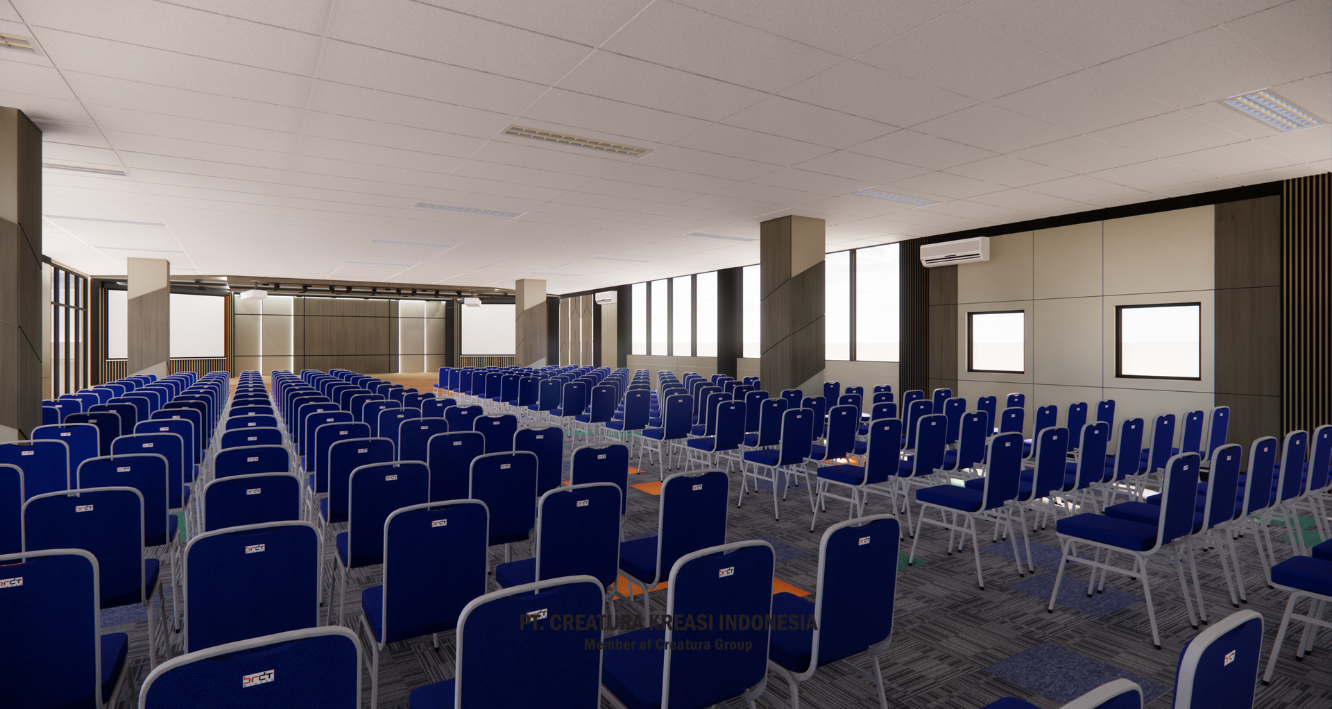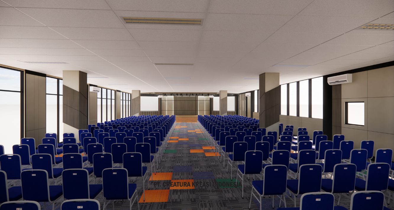 as a modern conference room. Its spacious and functional design, combined with a vibrant touch of color, creates an ideal space for a variety of formal events.