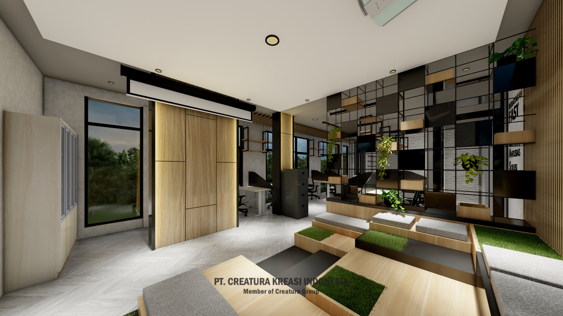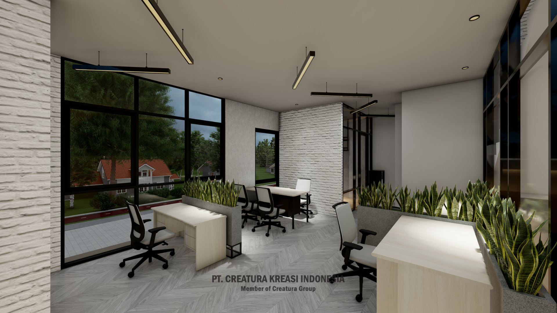 The lobby delivers a warm, professional, and sophisticated first impression, with natural tones and refreshing green accents that set a welcoming tone. Each space is thoughtfully designed with a minimalist and functional approach, maximizing natural light to foster a sense of comfort and openness. Work areas are dynamic and inspiring, designed to enhance productivity while incorporating greenery for visual balance and a calming atmosphere. Meeting rooms offer quiet, well-organized environments, carefully crafted to support focus, clarity, and comfort throughout every discussion.